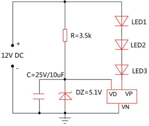 HX305無需外接其它元器件即可構成一個恒流輸出的LED驅動電路,除LED外。