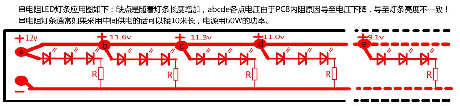 傳統的串電阻式燈條功率與電源接法 成本核算 |