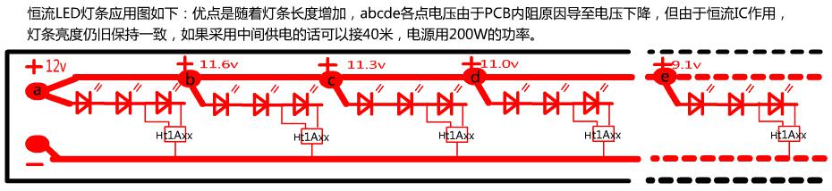12V直流供電,1米60顆2835燈珠恒流燈條應用案例(3顆1組,1米用20顆恒流IC):