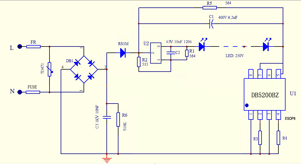 極少的外圍器件,與高壓恒流芯片配套使用,可除頻閃,與調(diào)光芯片配合實(shí)現(xiàn)可控硅深度調(diào)光無頻閃。