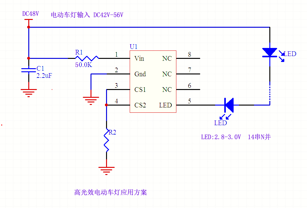 DC48V電動(dòng)車燈恒流驅(qū)動(dòng)IC應(yīng)用