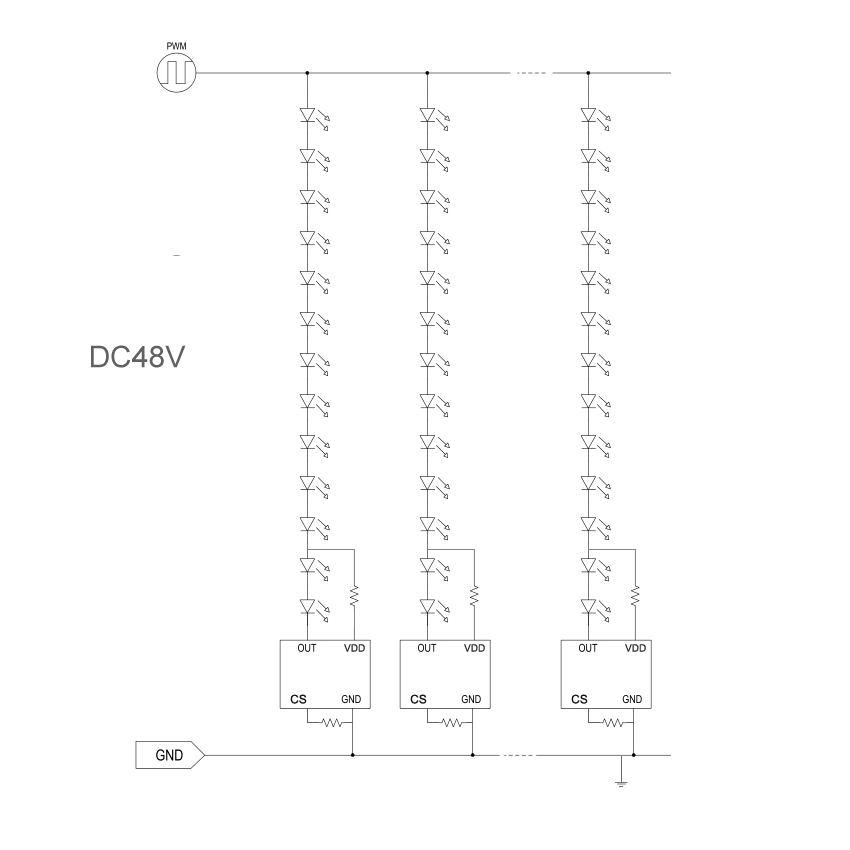 ◆耐壓60V,適用于DC5V 、12V、24V、36V、48V恒壓供電分布式恒流,兩線調光。