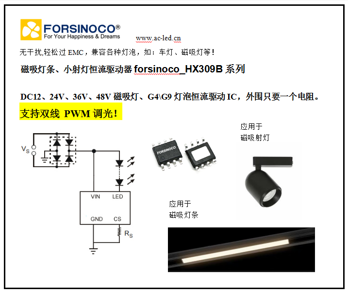 DC12、24V、36V、48V小磁吸燈恒流驅動,外圍簡單,節省空間,過EMC。